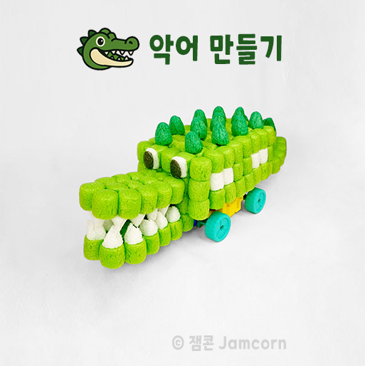 그 위에 잼콘을 붙여 입체적인 악어 모습을 완성해 보았어요.