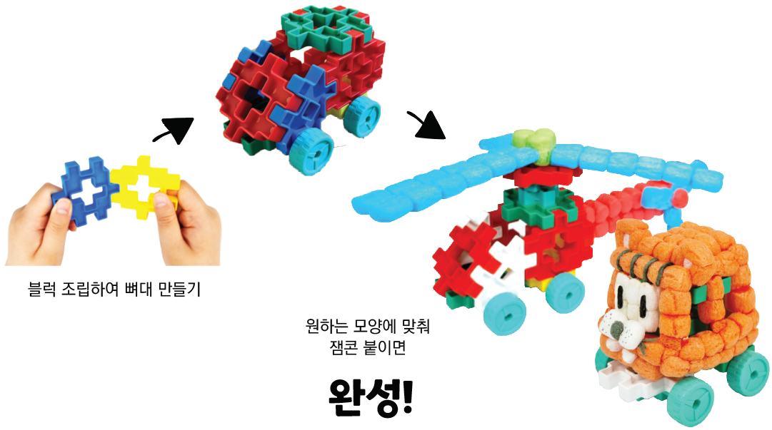 | 구성 | 잼콘 4000 조각 (10색*400조각), 응용 블럭 50개, 놀이 도구, 사용설명서 |